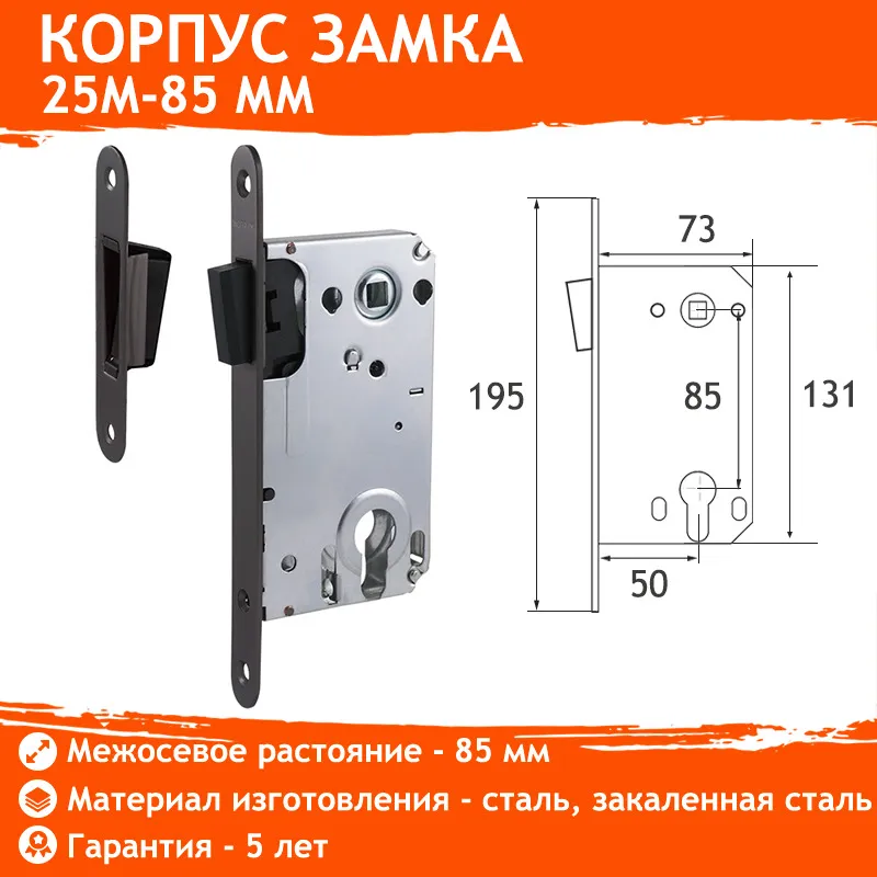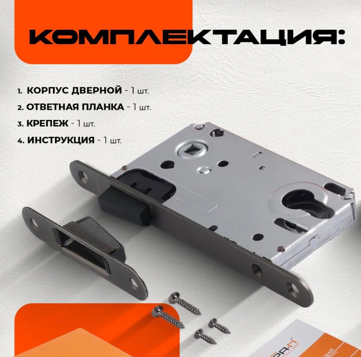 Магнитный корпус замка предназначается для деревянных межкомнатных дверей, для комплектации с цилиндровым механизмом секретности, накладкой под цилиндр и ручкой. Корпус изготовлен из стали, имеет порошковое покрытие. Межосевое расстояние – 85 мм.
