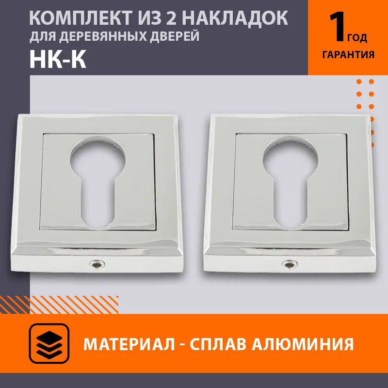 Накладка дверная под цилиндр предназначена для деревянных межкомнатных дверей. Накладка на дверной замок устанавливается на дверное полотно и подбирается по дизайну к дверным ручкам. Накладка под цилиндр ставится на личинку замка для декорирования замочной скважины. Накладки на цилиндр будут отлично гармонировать по внешнему виду с линейкой дверной фурнитуры Нора-М. Накладка на замок изготовлена из прочного сплава алюминия. Декоративные дверные накладки покрыты гальваническим способом в девять слоев, что обеспечивает долговечность и безупречный вид на долгие годы. В комплекте 2 квадратные накладки на цилиндр (на обе стороны двери) и комплект крепежа. Гарантия на комплект дверных накладок составляет 1 год.