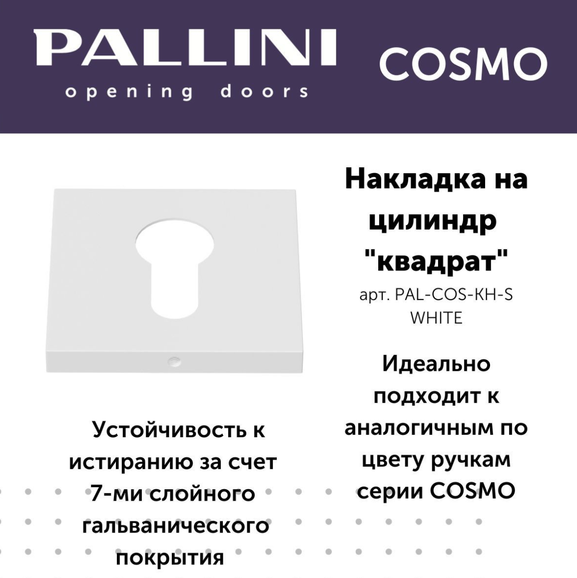 Будьте первым, кто оставил отзыв на “Накладка на цилиндр квадратная Pallini Cosmo PAL-COS-KH-S WHITE белый”