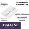 Усиленная стальная петля универсальна Pallini PH-3 100х70х3 изготовлена из стали толщиной 3,0 мм. Предназначена для установки на деревянные двери, подходит для дверей правого и левого открывания. Гальваническое покрытие прошло тест на устойчивость к коррозии в соляном тумане – более 96 часов, что соответствует высшему 4 классу стойкости покрытия. В петле Pallini PH-3 100х70х3 установлены четыре внутренних подшипника и стальной стержень. Благодаря четырем опорным подшипникам петля устойчива к проседанию. Несущая нагрузка петли усилена благодаря 3-х мм толщине петли, благодаря чему максимальная нагрузка на 2 петли составляет 45 кг, на 3 петли 60 кг. Размер петли: 100мм х 70мм х 3,0мм. Цвет: белый.
