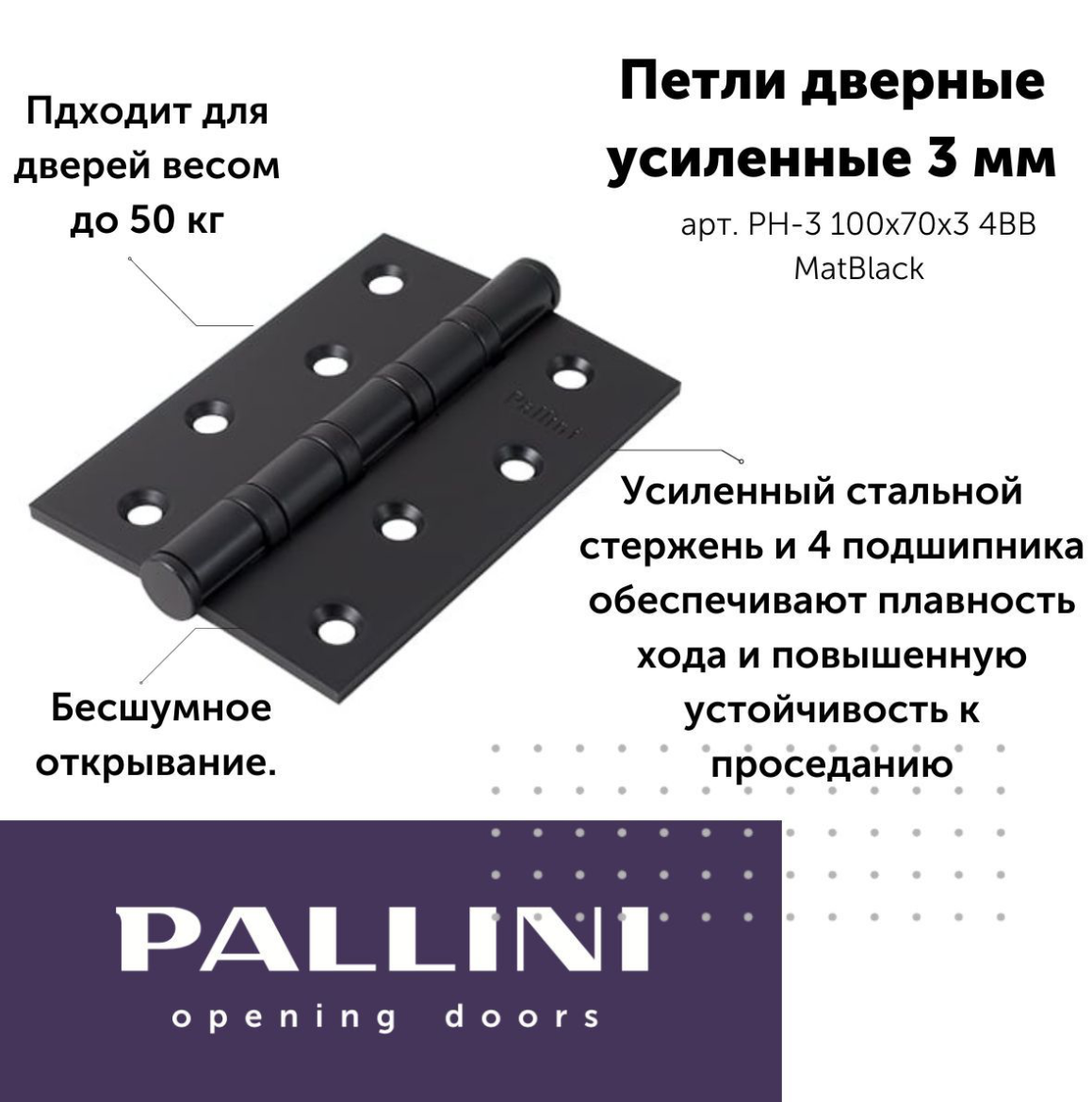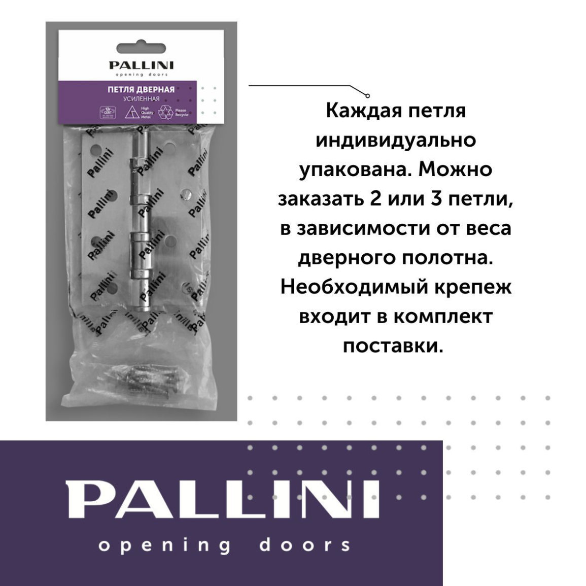Универсальная врезная петля PALLINI изготовлена из стали. Предназначена для установки на деревянные межкомнатные двери, подходит для дверей правого и левого открывания.