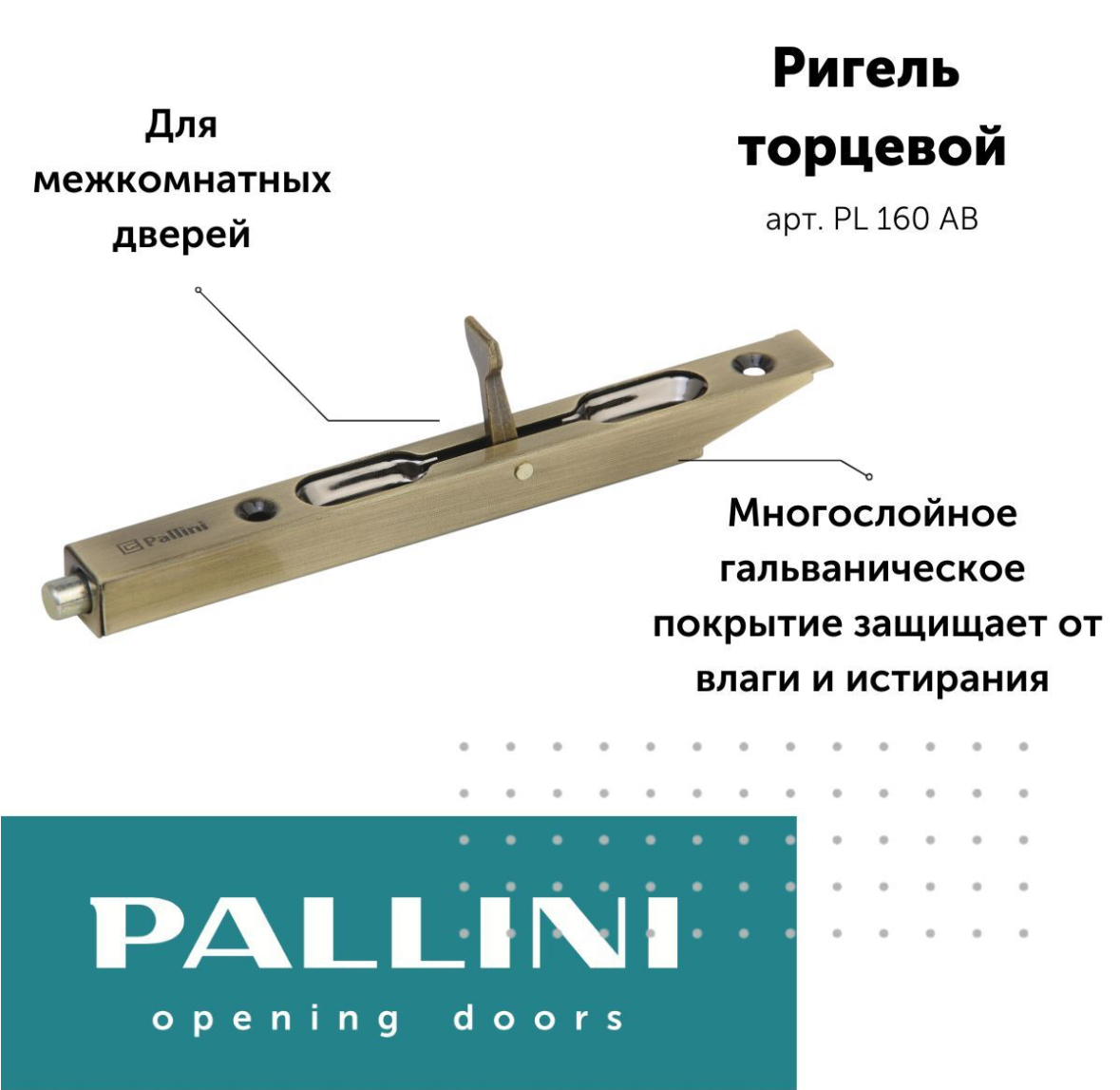 Упор торцевой Pallini PL 160 предназначен для фиксации одной из створок в распашных двухстворчатых дверях. Простая установка. Надёжная фиксация. Ответная планка и крепёж в комплекте. Высота 160 мм. Материал изготовления: сталь. Цвет: бронза античная.