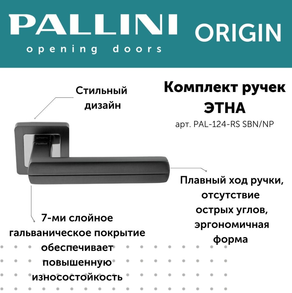 Дверная ручка Pallini “Этна” из коллекции Origin обладает отточенностью форм и линий. Ручка на квадратной розетке “Этна” одинаково хорошо смотрится как на межкомнатных дверях классического стиля, так и на современных царговых дверях с различными видами покрытий. Надежность и долгий срок службы дверных ручек Паллини из серии Origin подтверждается неизменно высоким спросом. Легкость формы сочетается с твердостью сплава из которого изготовлена дверная ручка на квадратном основании “Этна”. Цвет ручки: никель черный матовый.