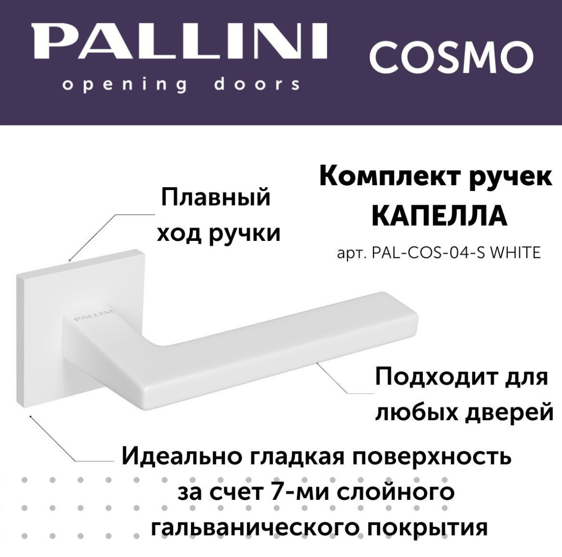 Дверная ручка Pallini “Капелла” из коллекции Cosmo воплотила в себе такие понятия, как достаток и уверенность в завтрашнем дне. Согласно древнегреческой мифологии звезда по имени “Капелла” (козочка по латыни), символизировала Амалфею, вскормившую Зевса. Сломанный случайно Зевсом рог этой козы, превратился в рог изобилия. Утонченность и изящество дверных ручек Паллини из серии Cosmo воплощено в тонкой 6-и мм розетке. Легкость формы сочетается с твердостью сплава из которого изготовлена дверная ручка на квадратном основании “Капелла”. Цвет ручки: белый.