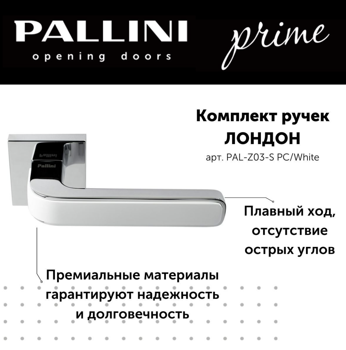 PALLINI PRIME – премиальная серия дверных ручек торговой марки Pallini. Дверная ручка “Лондон” на квадратной розетке отлично впишется в любой интерьер. Как жители Лондона любят разукрашивать фасады в интересные цвета, так и мы решили разнообразить ручку “Лондон” цветными вставками. А ещё эта модель имеет как круглую, так и квадратную основу. Цвет ручки: хром полированный/белый.