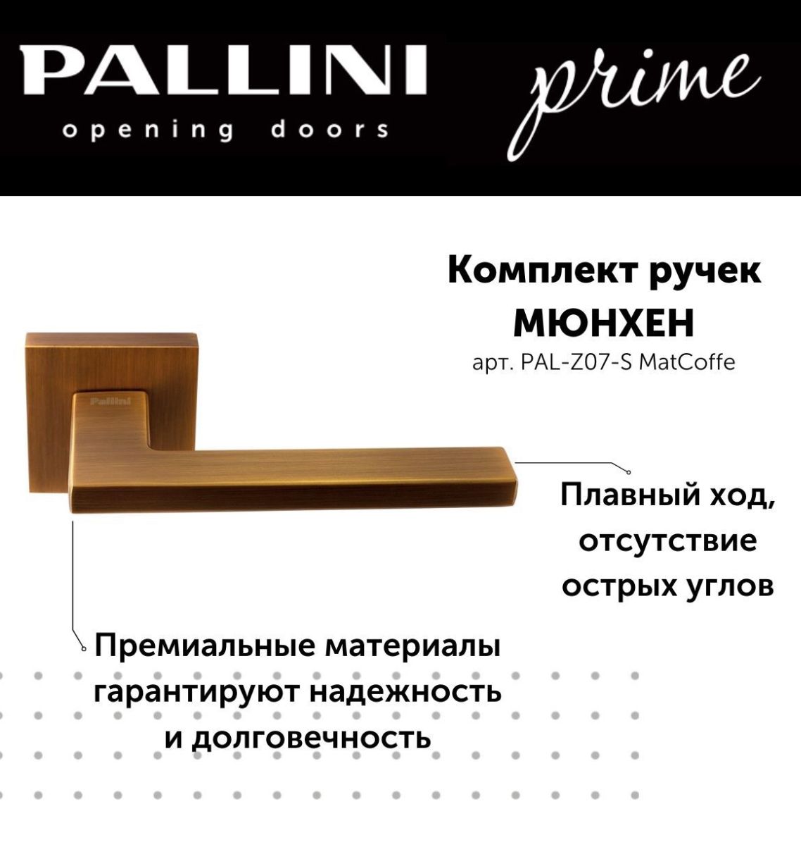 PALLINI PRIME – премиальная серия дверных ручек торговой марки Pallini. Дверная ручка Мюнхен на квадратной розетке отлично впишется в любой интерьер. «Das ist fantastisch!» — воскликнул бы истинный немец, если бы ему показали эту ручку, мы уверены. Прямые, чёткие линии и ничего лишнего – в лучших традициях немецкого минимализма. Перед Вами «прима» новой линейки Pallini Prime – ручка «Мюнхен». Цвет ручки: кофе матовый.