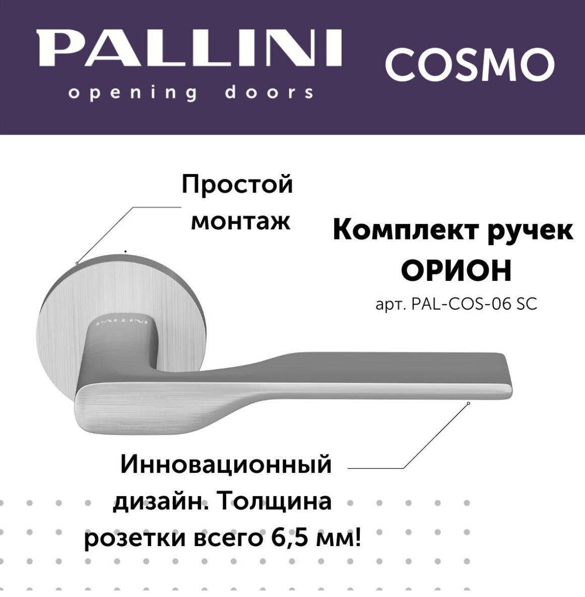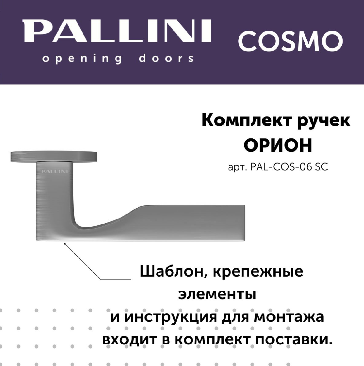 Будьте первым, кто оставил отзыв на “Ручка дверная Pallini Cosmo на круглой розетке 6 мм “Орион” PAL-COS-06 SС хром матовый”