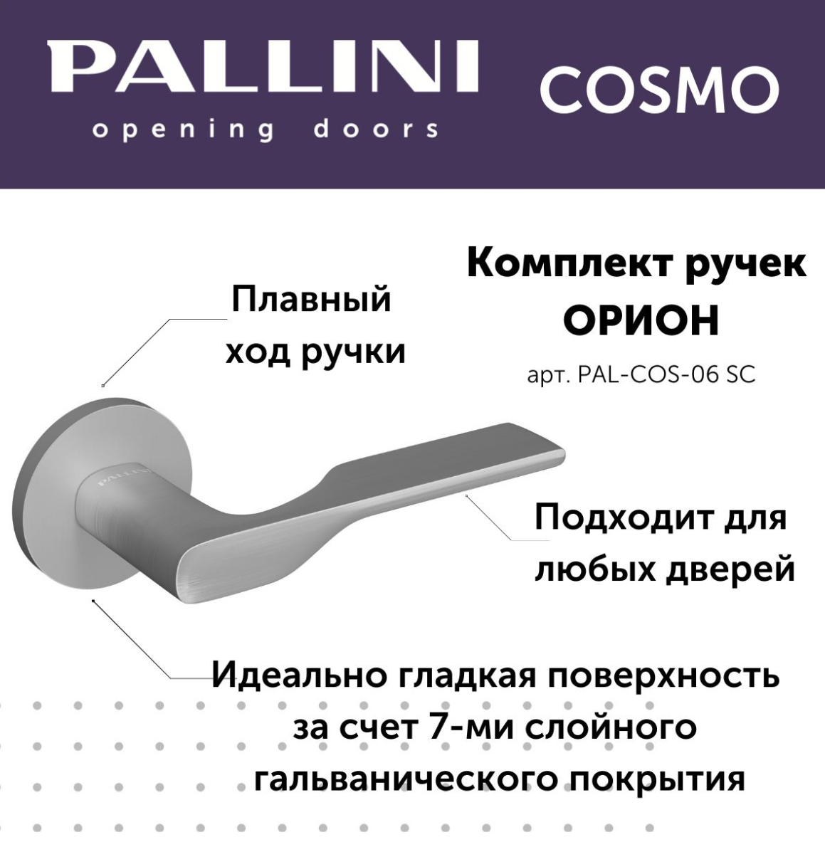 Ручка дверная Pallini Cosmo на круглой розетке 6 мм “Орион” PAL-COS-06 SС хром матовый