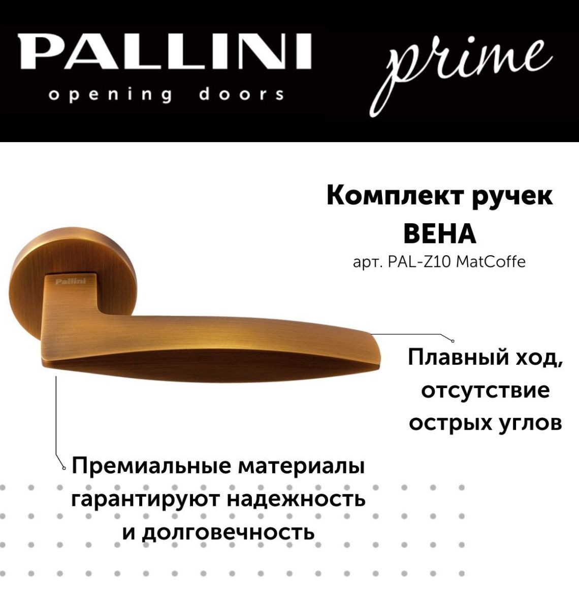 PALLINI PRIME – премиальная серия дверных ручек торговой марки Pallini. Что обязательно нужно знать о Вене? Это – столица Австрии. Она расположена на берегу реки Дунай. Вена подарила нам таких великих людей, как композиторы Моцарт и Бетховен, а также основателя психоанализа, известного под именем профессор Зигмунд Фрейд. А ещё “Вена” – это ручка коллекции Pallini Prime. Дверная ручка “Вена” на круглой розетке отлично впишется в любой интерьер. Цвет ручки: кофе матовый.